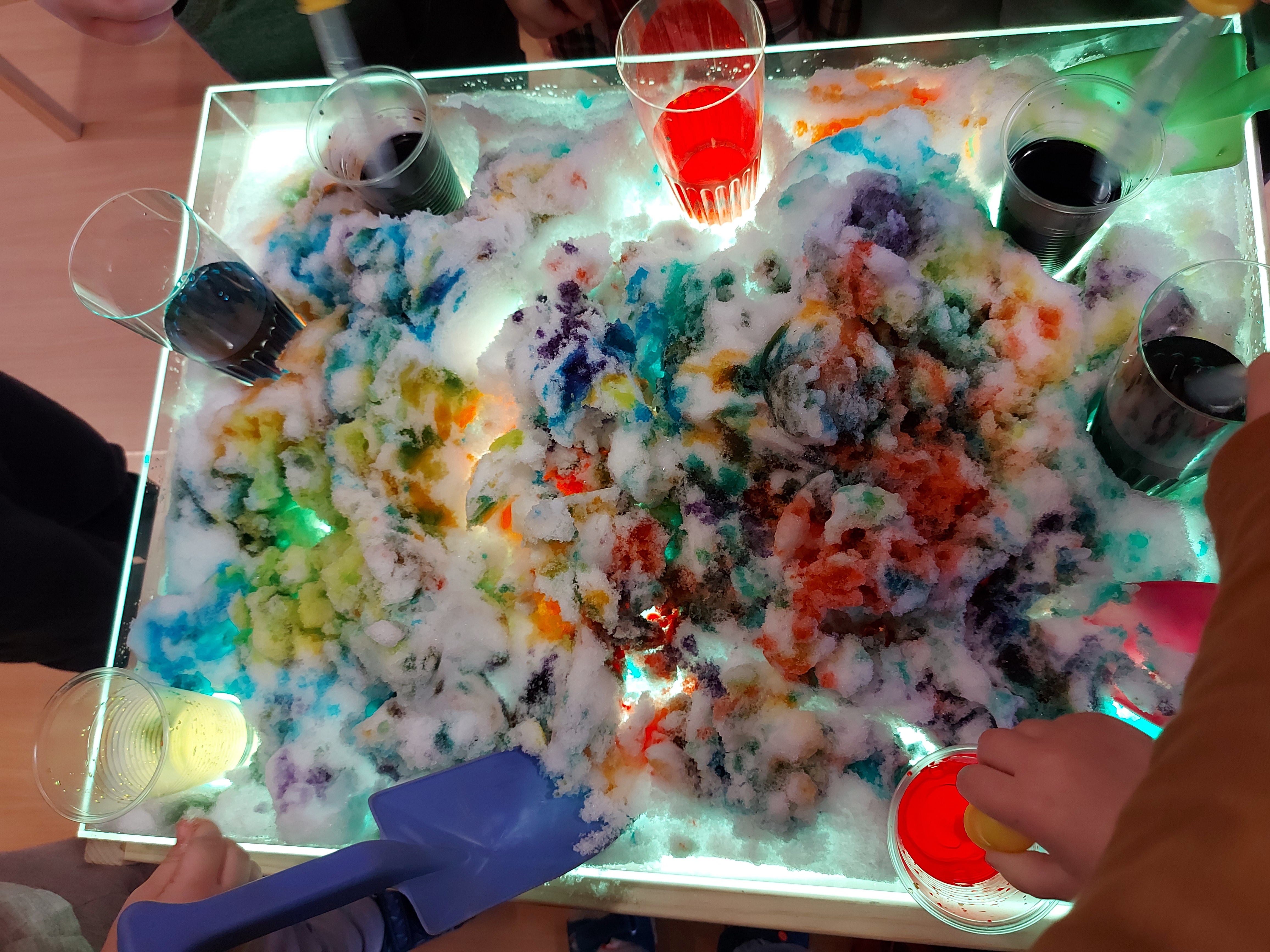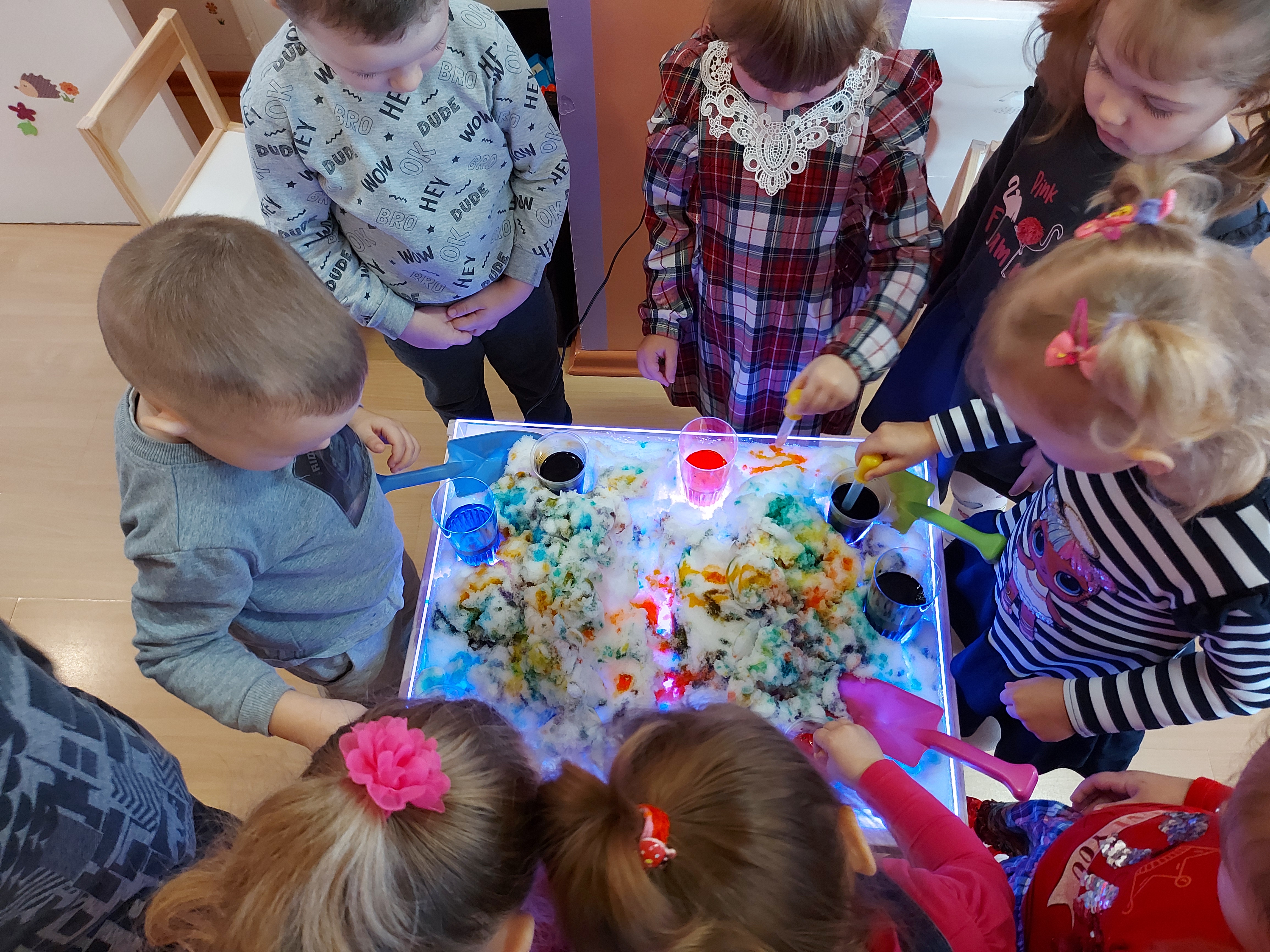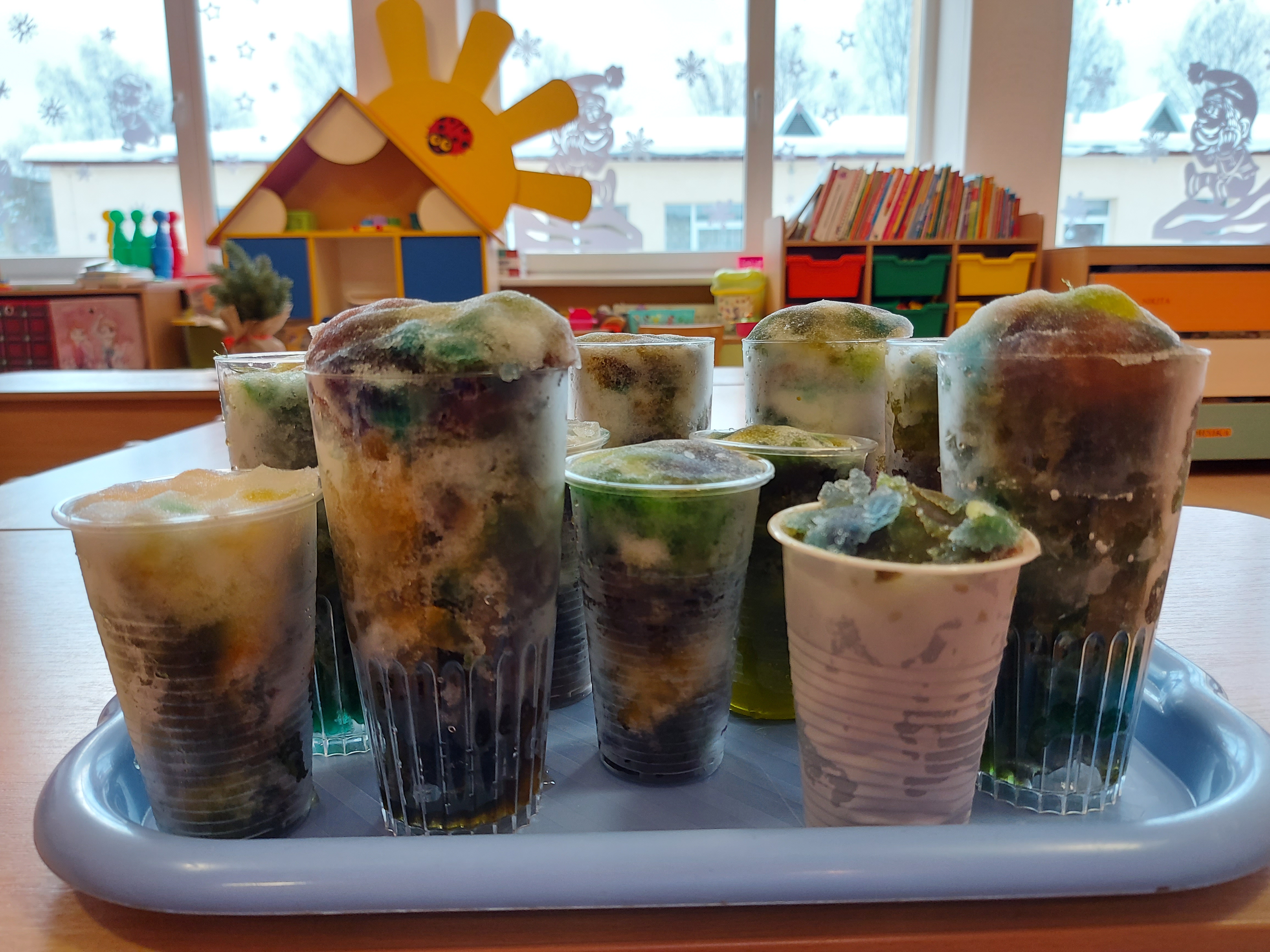 Wreszczie nadeszła zimowa aura, sypnęła puszystym śniegiem, panuje prawdziwa zima, więc czas się wziąść za czarowanie i eksperymentowanie tej piękności. Dzieci z grupy Biedronki postanowiły zrobić eksperymenty ze śniegiem, wodą oraz koloromi i to wszystko połączyć w jedno – zimę. Podczas tygodniowych zajęć malowaliśmy śnieg różnymi kolorami, z którego póżniej tworzyliśmy kolorowe babki i ustawialiśmy je na śniegu. Na placówce przedszkolnej zauważyliśmy smutne malutkie drzewko, które pocieszyliśmy pięknymi dekoracjami. Biedroneczki zrobiły je bardzo łatwym sposobem, co widzimy na zdęciach. Na koniec pozwoliliśmy naszym rączkom porelaksować, bawiąc się z wodnymi piłeczkami, które także wyczarowaliśmy.
