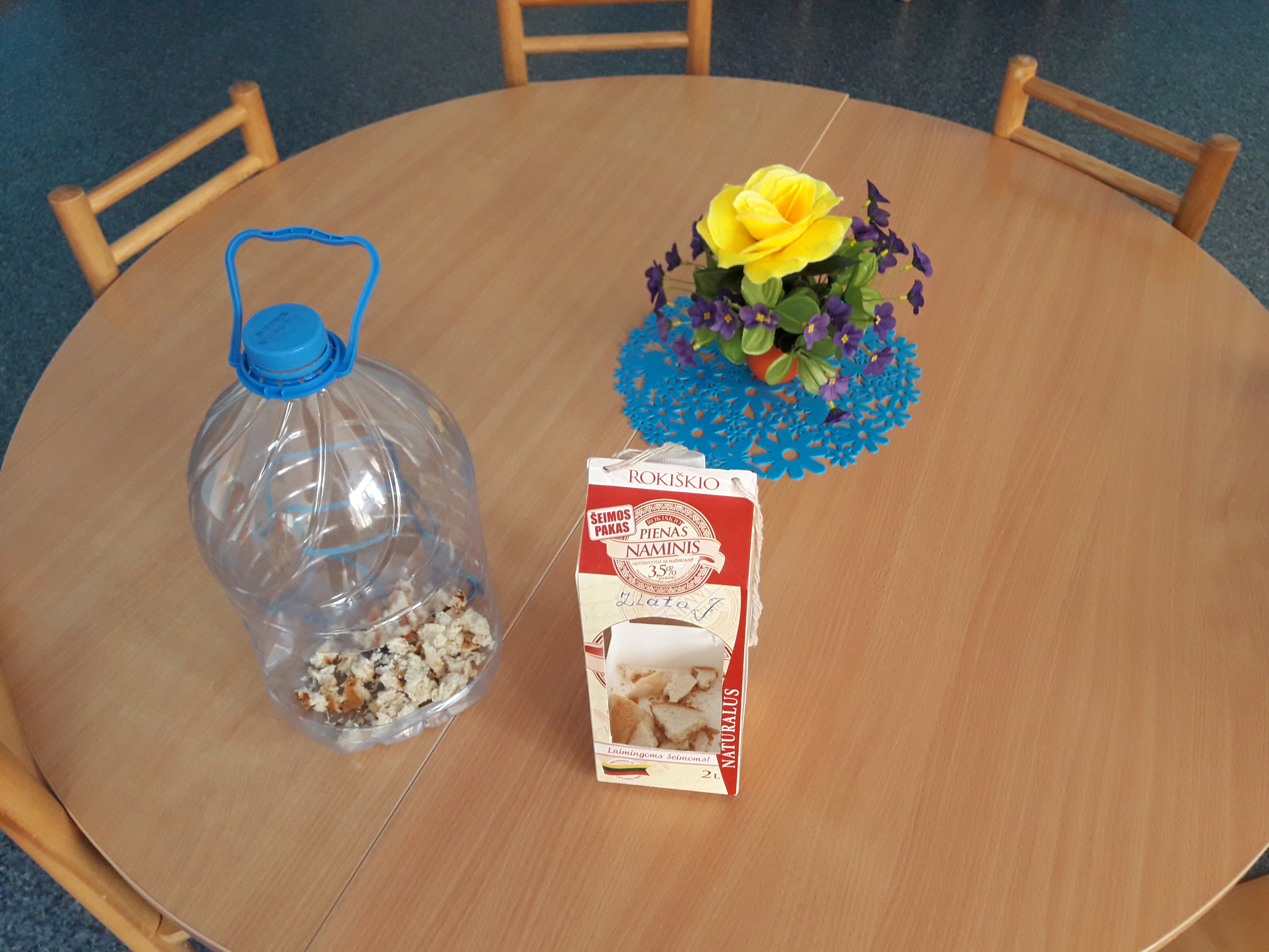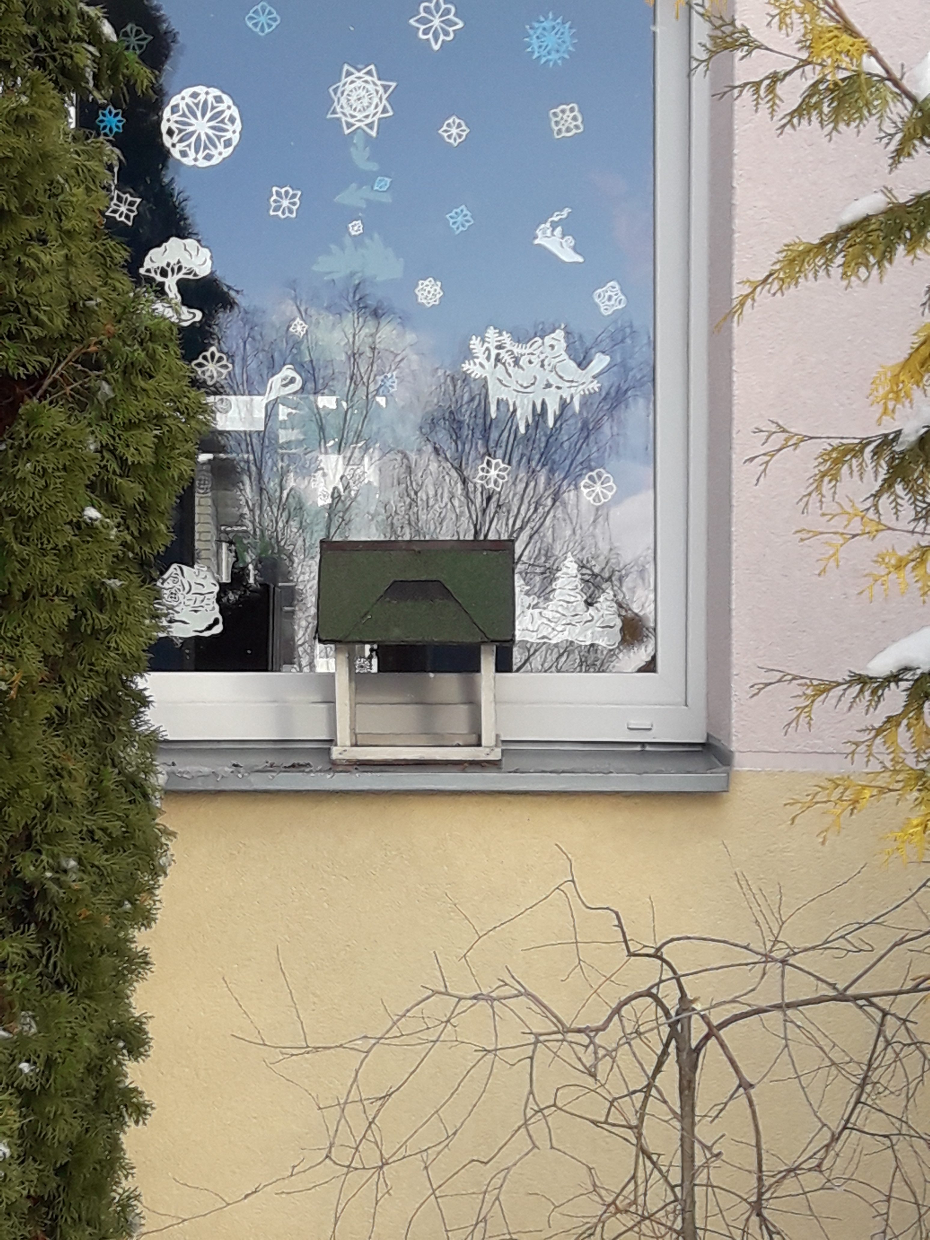 Razem z dziećmi zawiesiliśmy na drzewach nowe karmniki. Co dzień sprawdzamy i dosypujemy pokarmu. Mówimy „Siedzą ptaki na gałęzi i głośno ćwierkają, że w karmniku zawsze, pyszne ziarna mają”. Zwracamy szczególną uwagę na konieczność zachowania ciszy, aby nie spłoszyć ptaków. Chcemy podziękować rodzicom za piękne karmniki oraz ziarenka dla ptaków.