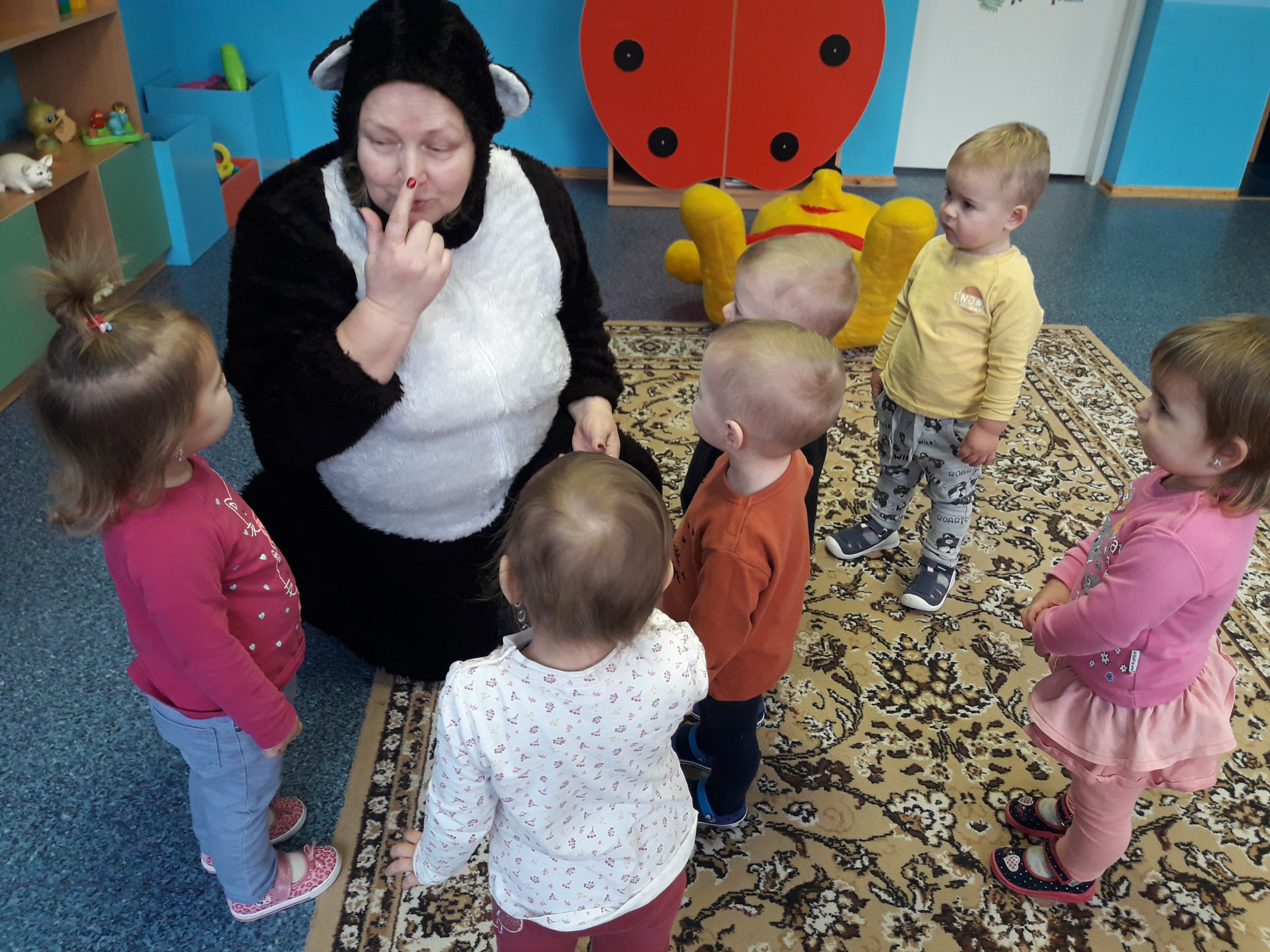 We czwartek dzieci czekała niespodzianka, przyszły do grupy niedźwiedzie. Ale nie prawdziwe zwierzęta, to panie przebrały się za misie i bawiły dzieci. Ciekawą atrakcją była też przygotowana misiowa budka fotograficzna, w której dzieci mogły zrobić zdjęcie. Najważniejszy, główny cel imprezy – wspólna, zgodna zabawa – został osiągnięty. Było misiowo i wesoło. Mamy nadzieję, że to wielkie misiowe przyjęcie zostanie w naszych wspomnieniach na długi czas.